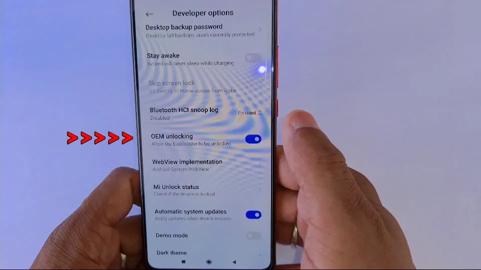अब यहाँ Developer Options में हमें पहले OEM Unlocking को ऑन करना है।
