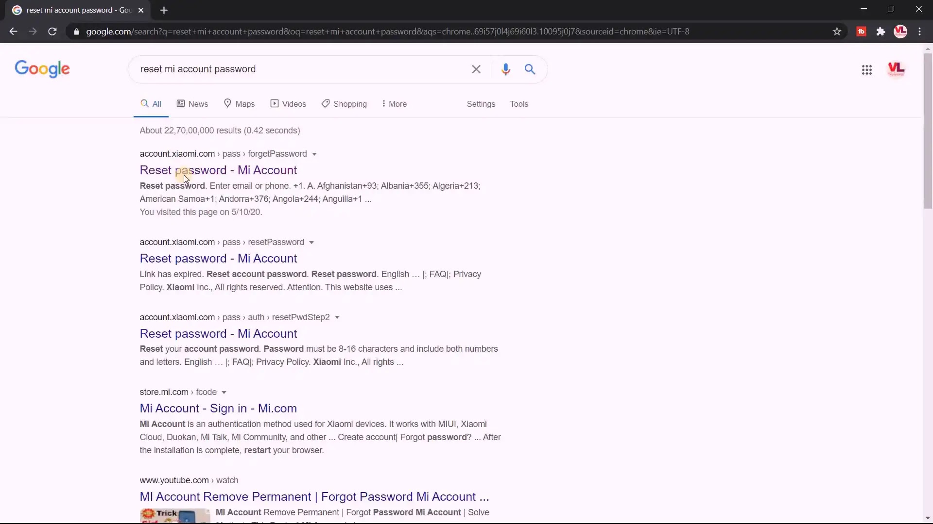 इसके लिए दोस्तों हमें पहले तो किसी दूसरे डिवाइस में Browser को Open करके Search करना है “Reset Mi Account Password” .