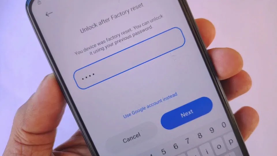 अब यहाँ दोस्तों हमें वो Password Enter करने हैं जो हमने अपने डिवाइस में हमने पहले Lock Screen पर सेट कर रखे थे। अगर आप उन्हें भूल गए है तो फिर आपको उस Google Account को Enter करना है , जो इस फ़ोन में Login था।
