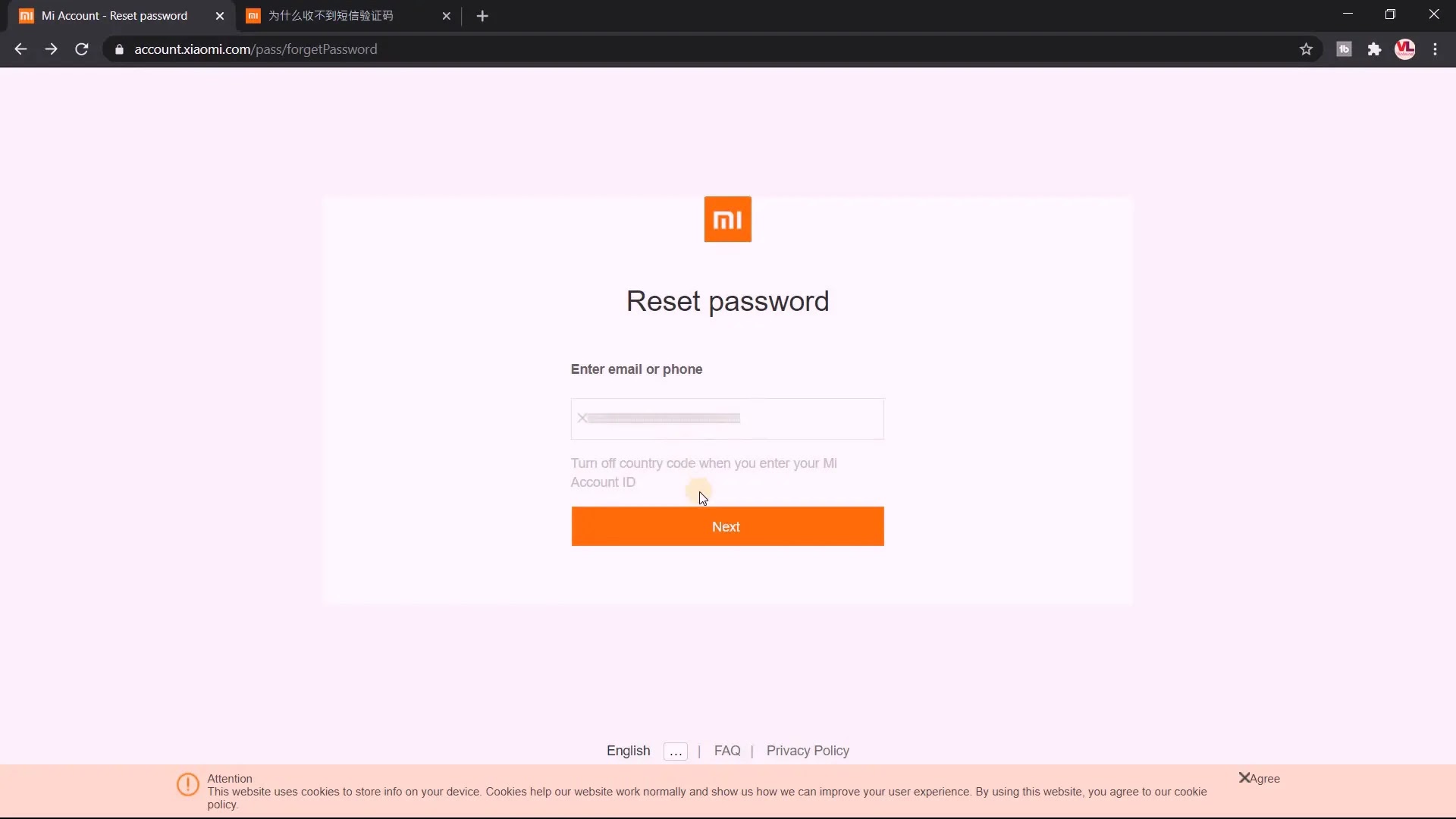 अब यहाँ दोस्तों हमें वो Email या तो Phone Number Enter करने हैं जिससे हमने वो Mi Account बना रखा है जो हमारे Device में Login है। Enter करने के बाद हमें Next कर देना है।