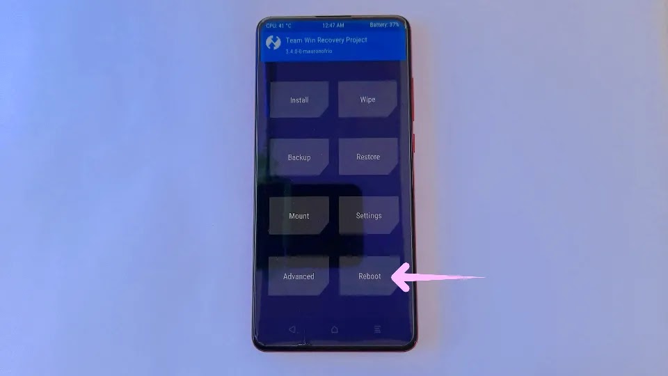 рдЕрдм рд╣рдореЗрдВ рдЗрд╕ Reboot рдкрд░ рдХреНрд▓рд┐рдХ рдХрд░рдХреЗ рдЕрдкрдиреЗ рдбрд┐рд╡рд╛рдЗрд╕ рдХреЛ Boot рдХрд░ рд▓реЗрдирд╛ рд╣реИред