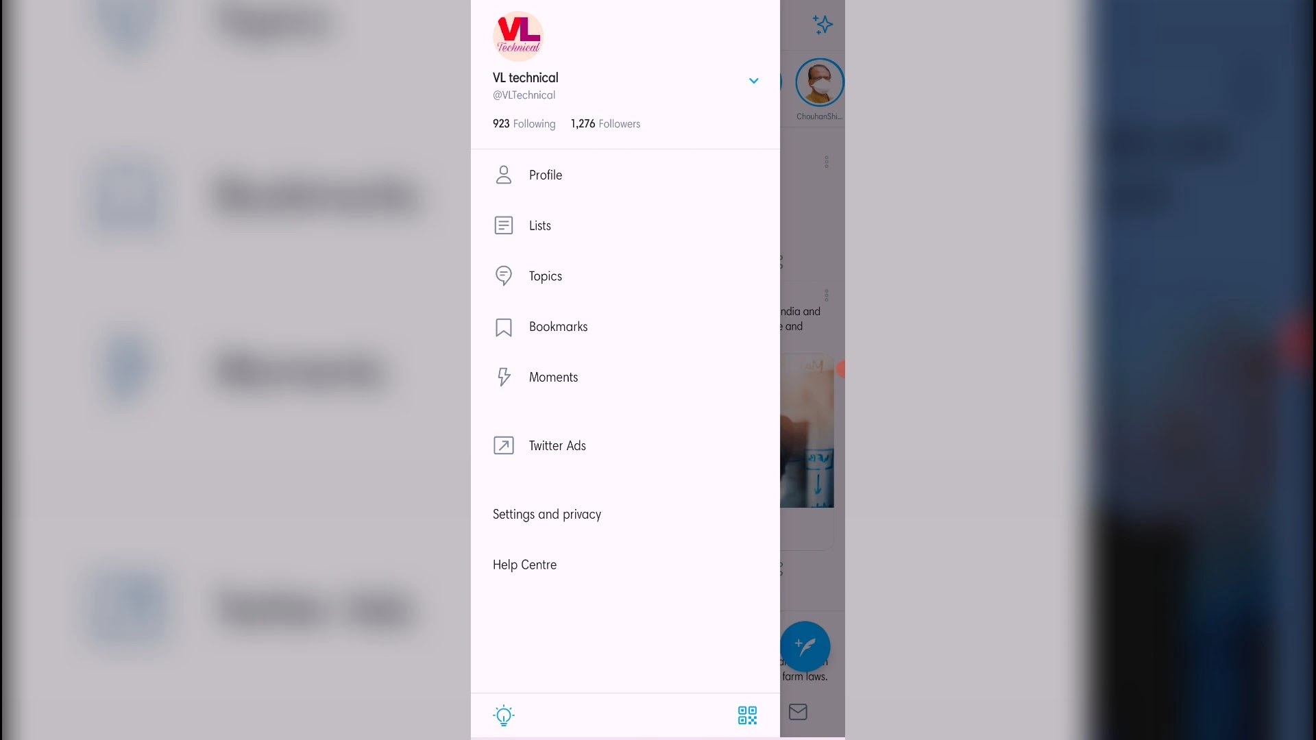 दोस्तों इसके लिए हमें अपने फ़ोन में Twitter App को ओपन कर लेना है। ओपन करने के बाद हमें Menu के Option पर क्लिक करना है।