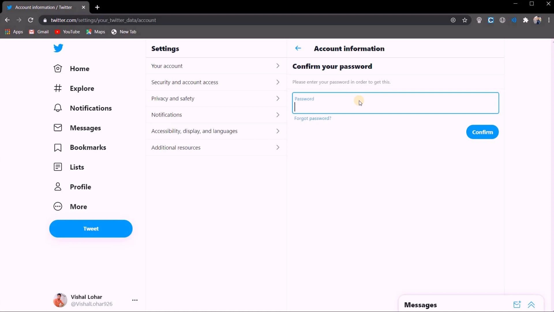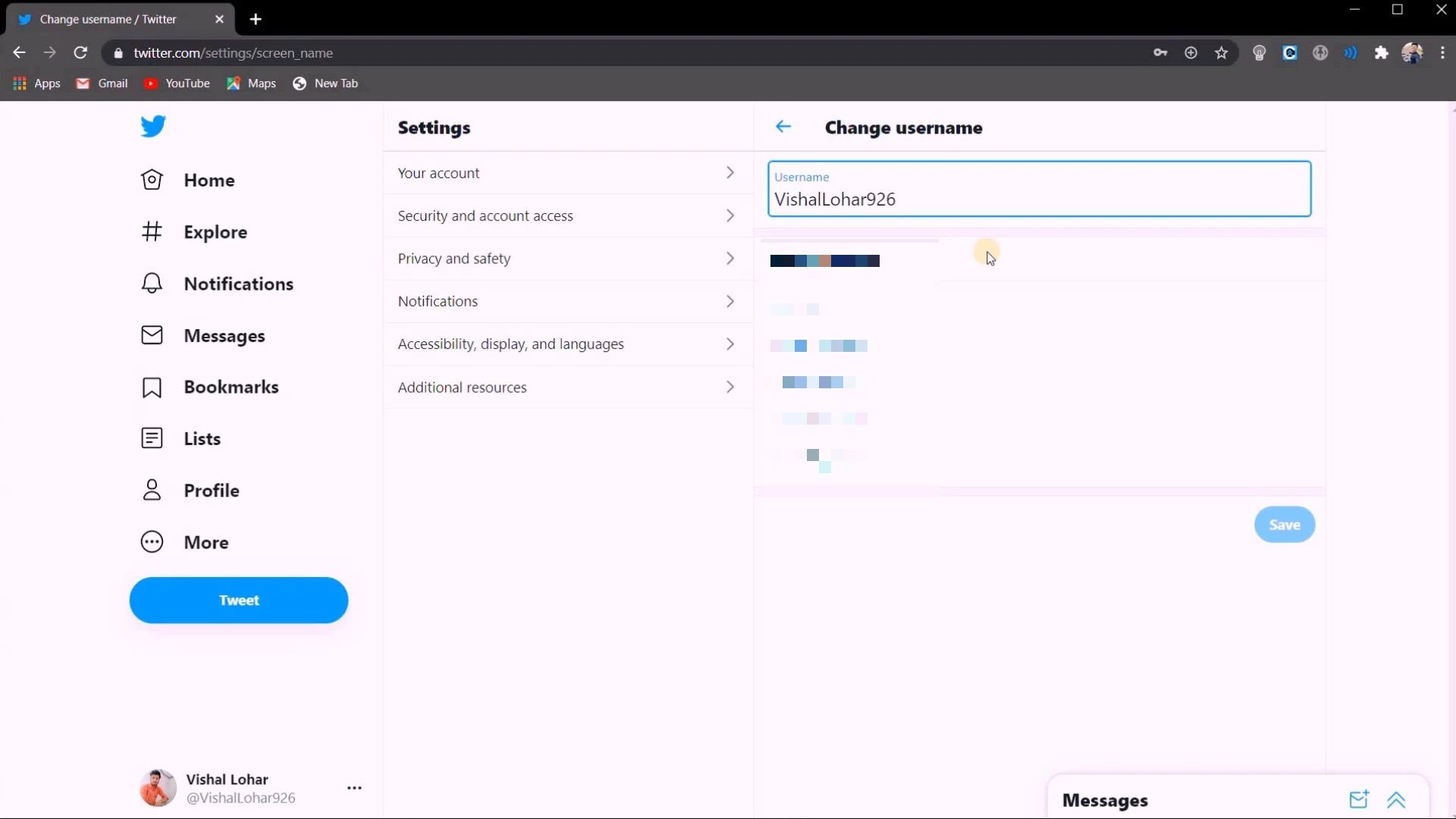 अब यहाँ से हम अपने Twitter Account के Username को Change कर सकते हैं।