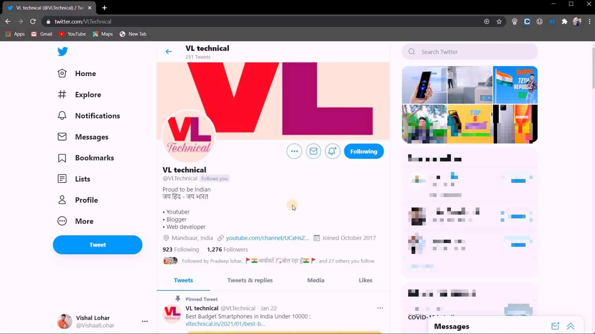 अब अगर दोस्तों आप चाहें तो मुझसे Twitter पर भी कनेक्ट हो सकते हैं , यहाँ में Tech से Related Tweet करता रहता हूँ। Username Vltechnical ही है।