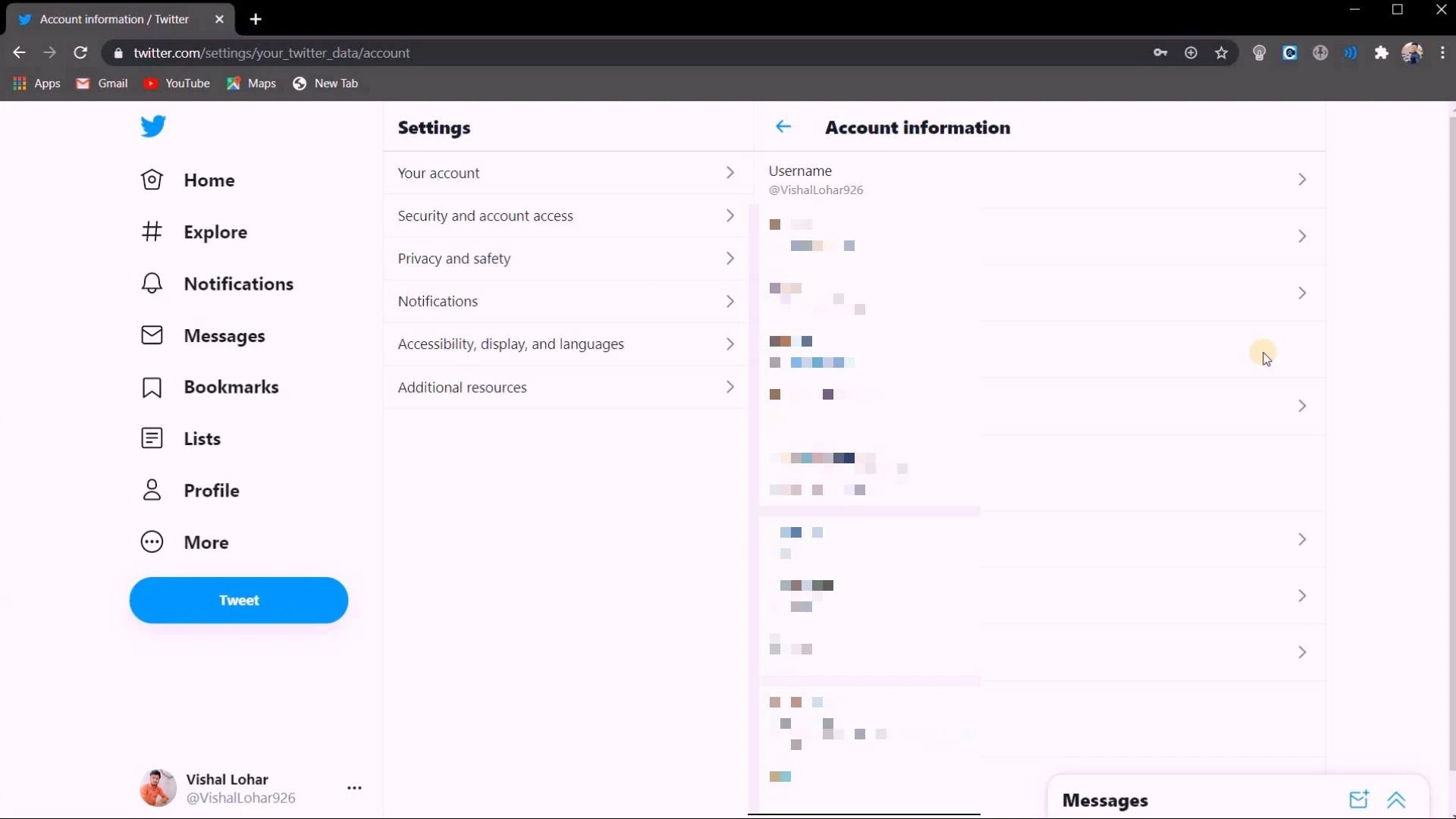 Confirm होते ही Account Information ओपन हो जाएगी। यहाँ आप देख सकते हैं Username ऊपर ही शो हो रहा है। इसे Change या Edit करने के लिए हमें इस पर क्लिक करना है।