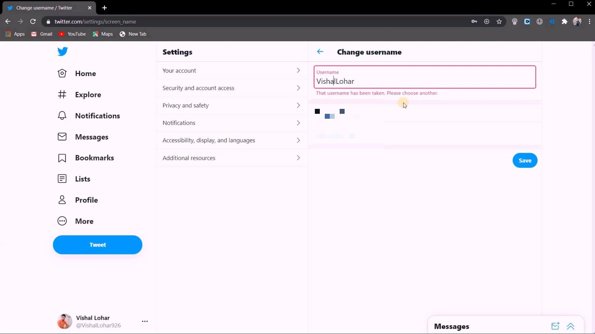अब अगर दोस्तों आप जो Username Enter कर रहे हैं वो Save नहीं हो पा रहा है तो इसका मतलब है वो Username Available नहीं है , वो पहले से ही Use में है।