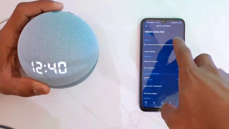 इसके लिए दोस्तों हमें app में Device settings में जाकर Echo Dot की सेटिंग्स में आ जाना है।
