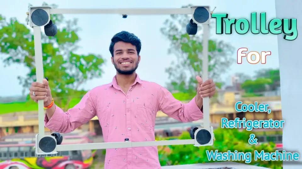 तो अब गाइस में वाशिंग मशीन , रेफ्रिजरेटर और कूलर इस ट्राली पर रखकर आपको दिखा देता हूँ की वो कितनी आसानी से इसपर रखे जा सकते हैं और इधर – उधर मूव भी किये जा सकते हैं।