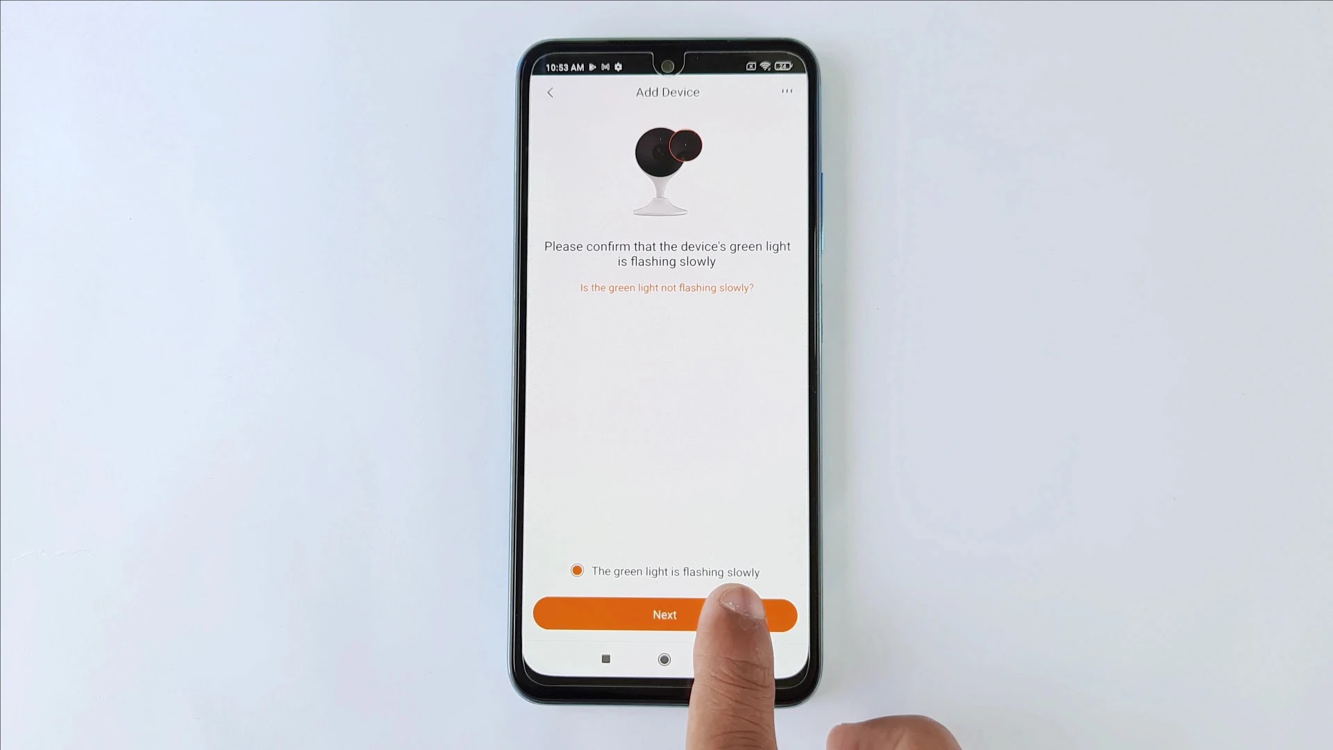 अब ये करते ही कैमरे में ग्रीन लाइट फ़्लैश करनी स्टार्ट हो जाएगी। तो यहाँ इस वाले पेज में हमें इसे चेक करके नेक्स्ट कर देना है।
