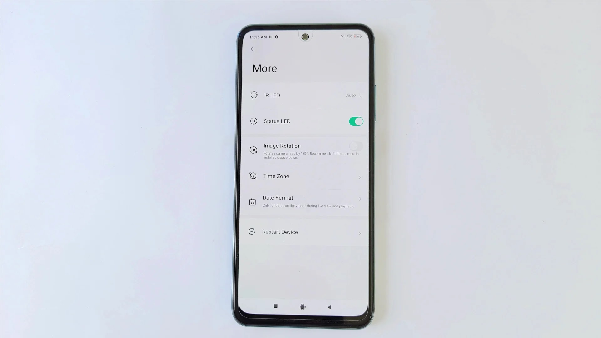 तो यहाँ से हम IR Led और Status Led को बंद चालू कर सकते हैं। अब अगर हम अपने कैमरे को उल्टा माउंट करते हैं तो वीडियो हमें सब कुछ उल्टा दिखाई देने लगता है । तो उसे सीधा करने के लिए हम Image Rotation ऑप्शन का यूज़ कर सकते हैं। ये वीडियो को 180deg पर फ्लिप कर देता है। जिससे वीडियो सीधा दिखाई देने लग जाता है।