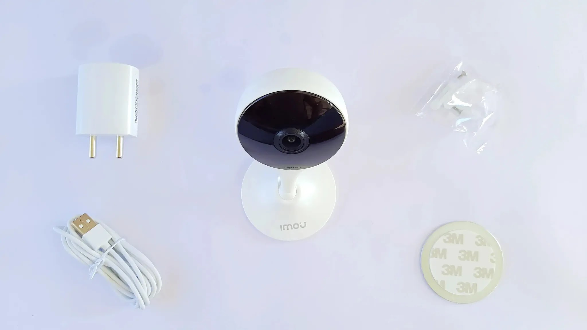 अब हम फ़टाफ़ट से इस बॉक्स को ओपन करके इसके Box – Contents की बात कर लेते हैं। तो बॉक्स में हमें कैमरा मिलता है , एक Power Adapter मिलता है , Micro USB केबल मिलती है , कुछ स्क्रूज़ मिलते हैं और इसे माउंट करने के लिए Tap और Pad मिल जाते हैं।